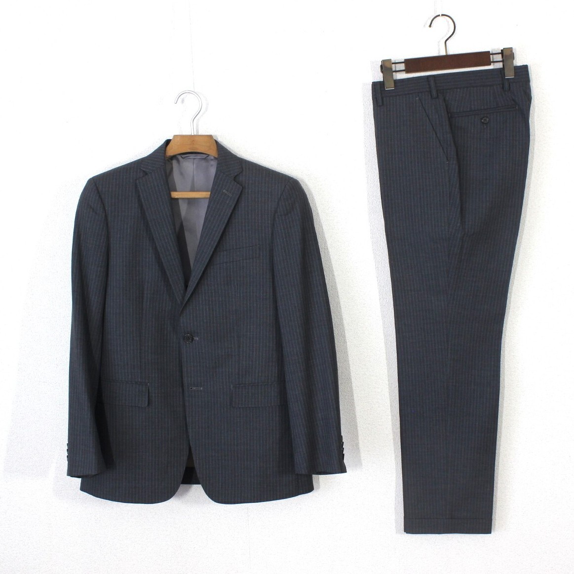 - 51【美品】ニューヨーカー スーツ A5 メンズ M グレー ストライプ 面接 ビジネス 入学式 tqe NEW YORKER 春夏秋 ★美品★