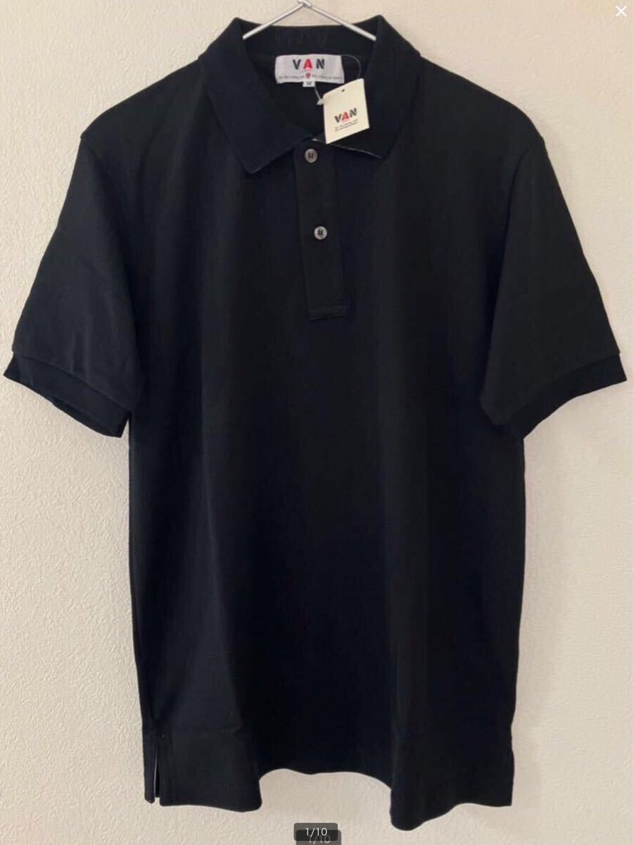- 90s VAN JAC ヴァンヂャケット 半袖ポロシャツ ブラック(襟裏ホワイト×織ネーム) Mサイズ 日本製 下げ札付き(デッドストック)