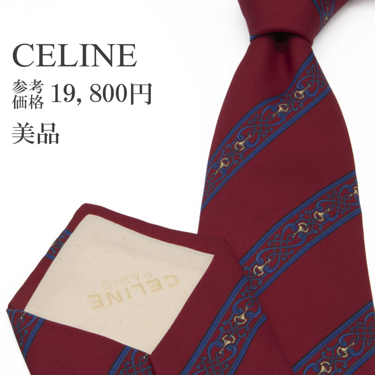 - 送料無料 セリーヌ ネクタイ レギュラータイ シルク 赤 レッド 青 黄色 ストライプ マカダム ブラゾン ホースビット ロゴ マーク 綺麗 P236