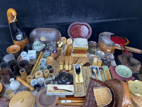 - ut 茶道具まとめて 巾筒 柄杓 茶入 灰匙 茶托 茶筅 香炉 他色々 茶道具 煎茶道具 茶事 茶会 茶の湯 茶道教室 茶稽古 陶器 銅器 錫製 現状品