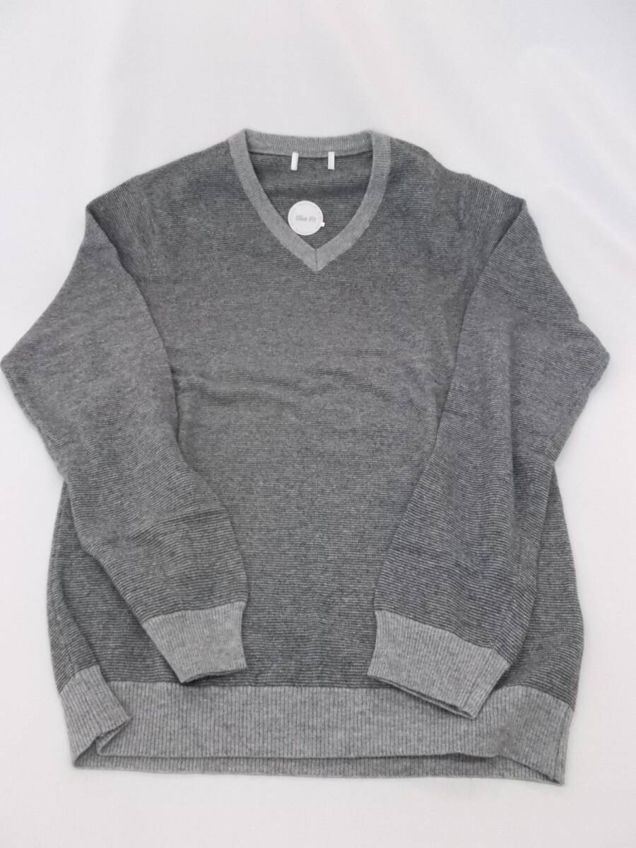 - ☆特価【74%OFF】定価1.5万 イタリア製 新品未使用品 Vネック ニットセーターメンズ Mサイズ スリムフィット グレーボーダー 115管49450589