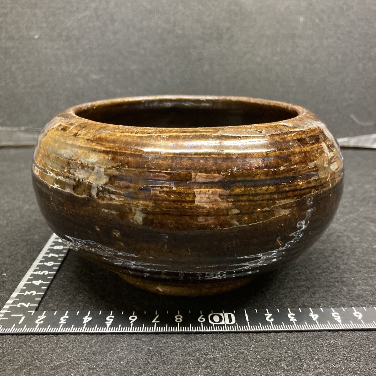 - 九谷焼き 飴釉 建水 大樋銘有り作者不詳 アンテーク