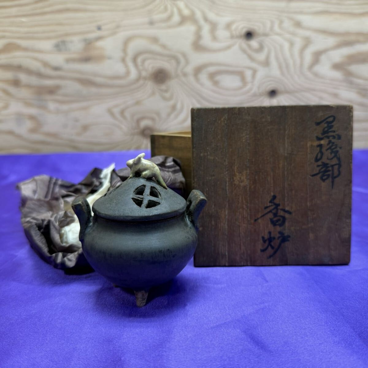 > 希少品 黒浅部 香炉 お茶 茶道 お洒落 古美術 JAPAN 日本 香道具 R71480