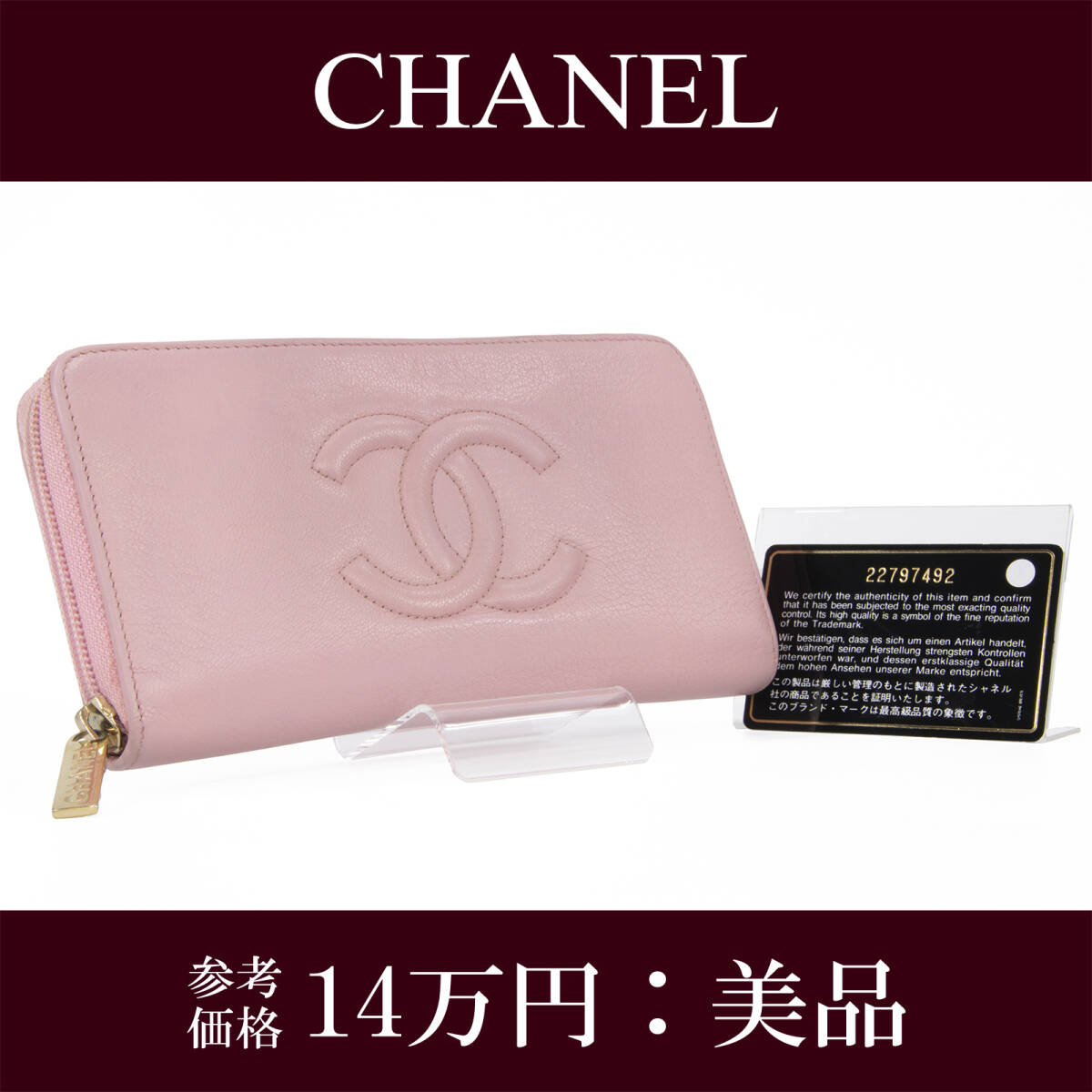 - 本物 送料無料 シャネル 長財布 ラウンドファスナー ジップタイプ レディース ピンク 特大CCロゴ ココマーク ゴールド金具 かわいい G111