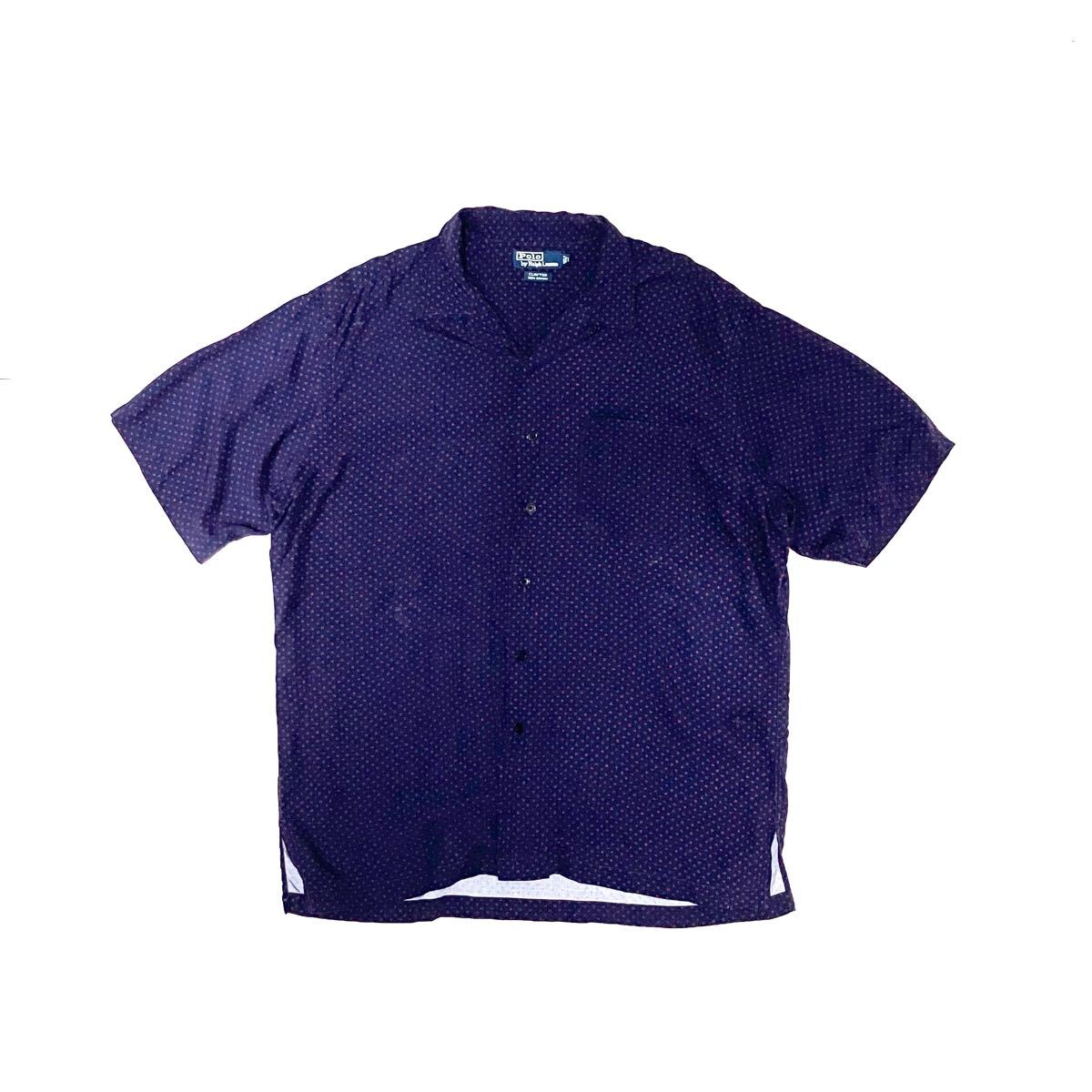 > L ポロ ラルフローレン 総柄 開襟 半袖 シャツ アロハ ハワイアン オープンカラー ヴィンテージ Polo Clayton レーヨン ネイビーxレッド