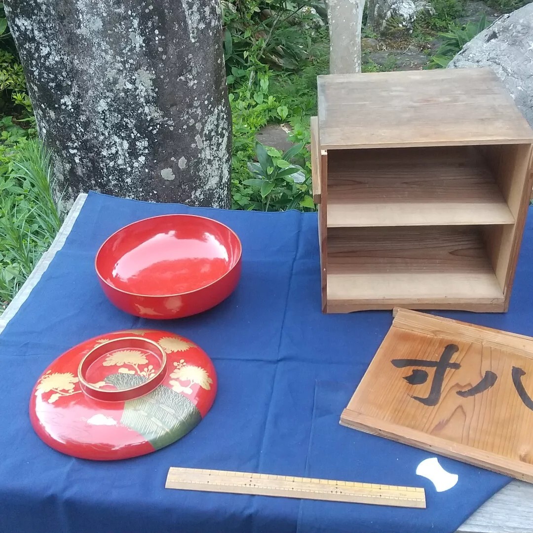 - 明治36年 大平 大蓋物 八寸朱漆塗 竹垣と菊蒔絵 共箱