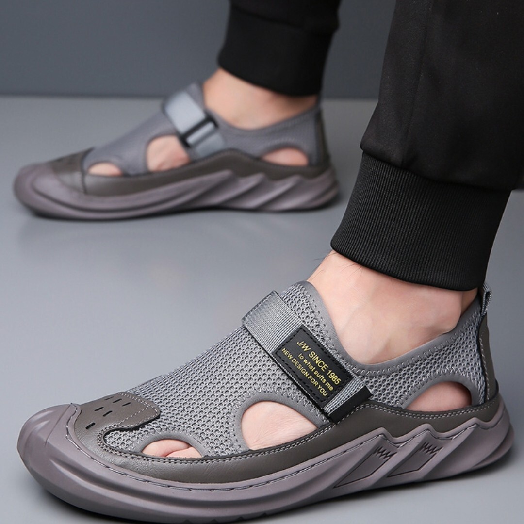 > sa67 グレー 【26.5cm】メンズ スポーツサンダル 水陸両用 メッシュ つま先保護 かかとあり 夏用 歩きやすい ビーチ アウトドアサンダル