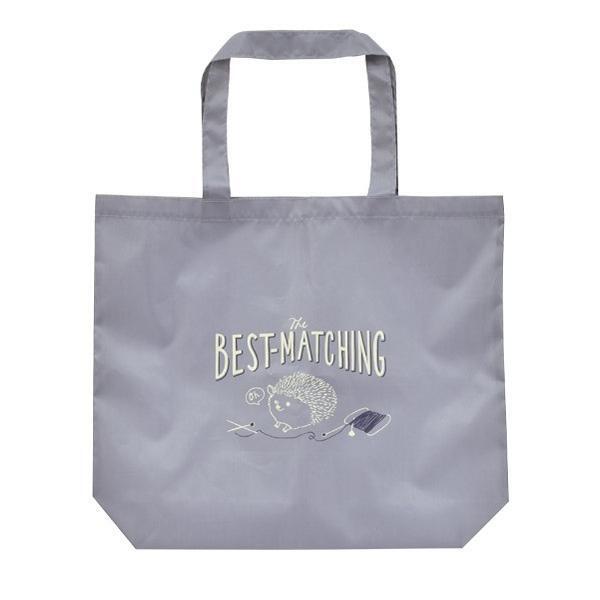 - ナイロントートバッグ 横型 LLサイズ ハリネズミ柄 グレー エコバッグ 100均