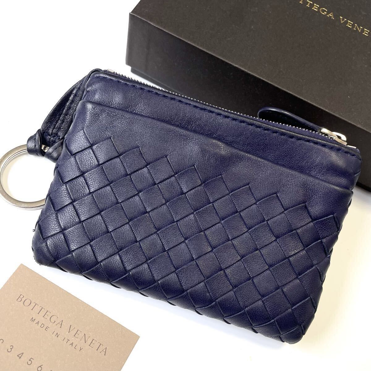 > ★ BOTTEGA VENETA ボッテガ コインケース キーリング付き イントレ メンズ ネイビー 中古美品【鑑定済み 本物保証】