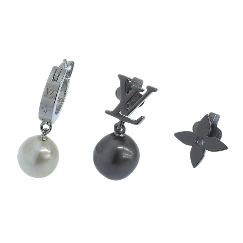 - ルイヴィトン LOUIS VUITTON モノグラム ピアス フェイクパール 3個セット M01297 中古 新入荷 LV1839