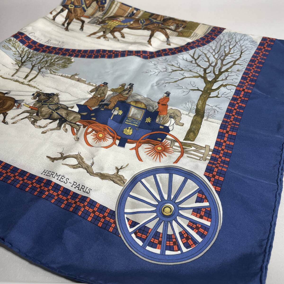 - 77B175|美品|エルメス カレ 90 スカーフ シルク ネイビー