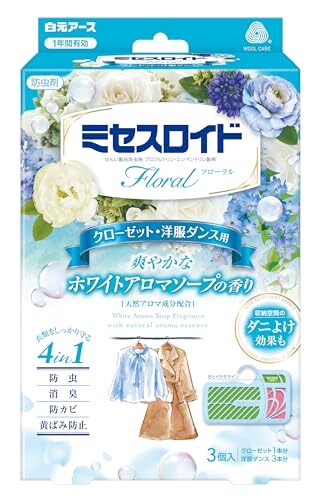 - ミセスロイドフローラル クローゼット・洋服ダンス用 3個入 1年防虫 ホワイトアロマソープの香り容量3コ