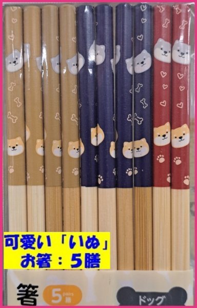 - 【送料無料 箸 5膳 可愛い 「犬」 いぬ】 ★No2 可愛い 「犬柄」のお箸 ★イヌのお箸:子犬 22.5cm:はし:お箸