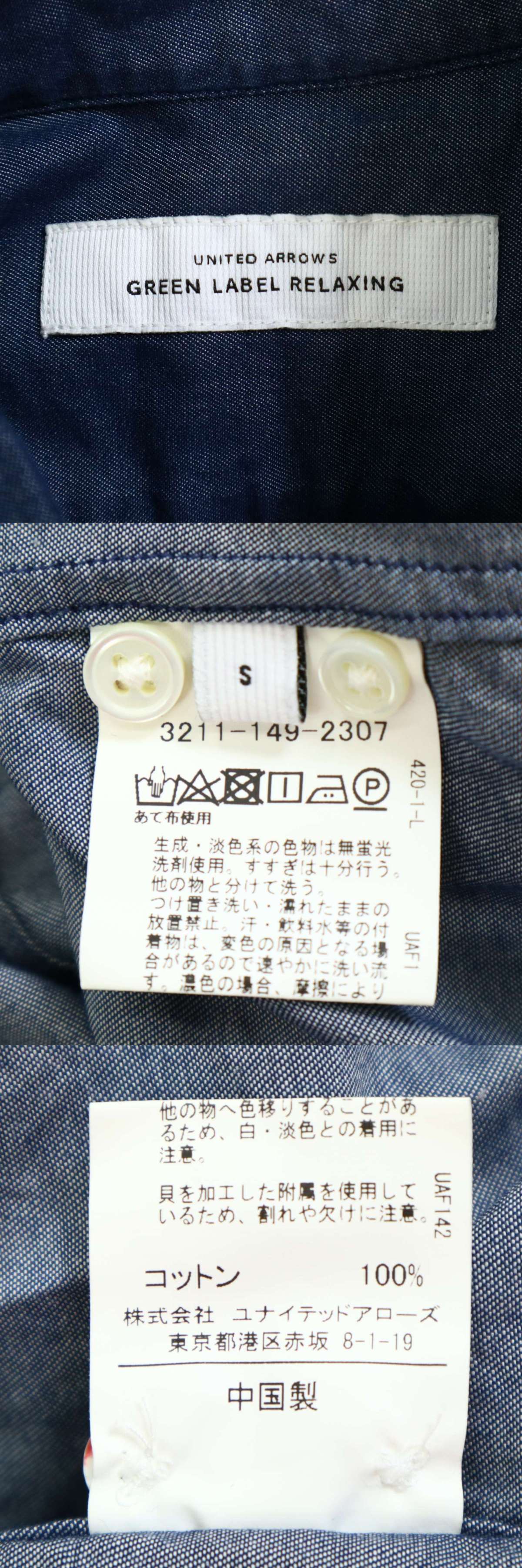- 【美品】green label relaxing ユナイテッドアローズ 通年★ 長袖 シャンブレー ボタンダウン シャツ Sz.S メンズ