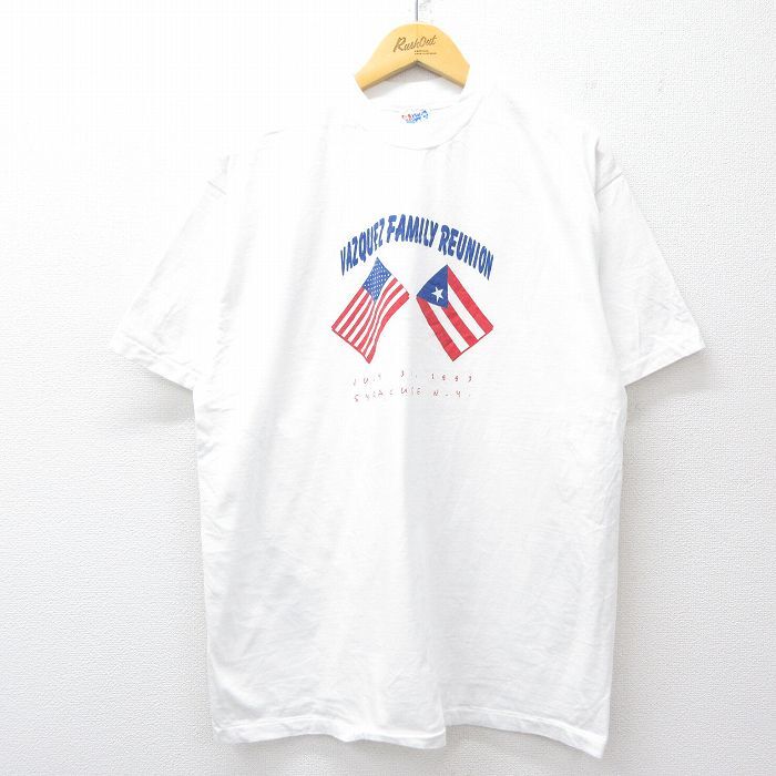 - XL/古着 ヘインズ 半袖 ビンテージ Tシャツ メンズ 90s 星条旗 プエルトリコ コットン クルーネック 白 ホワイト 25jul29 中古