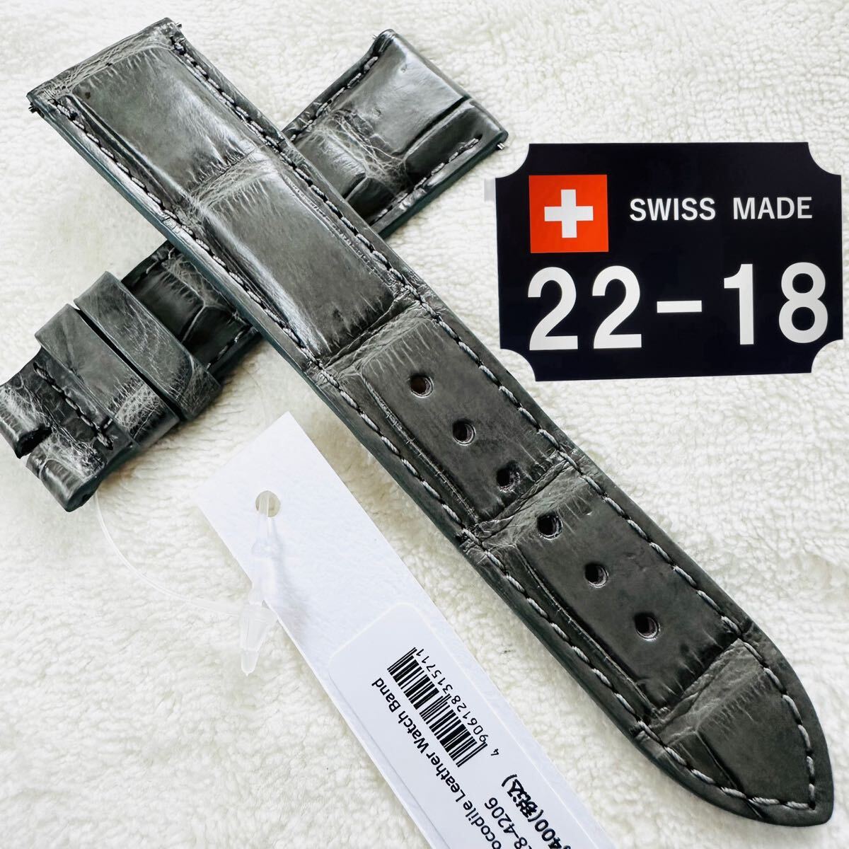 - 4206#22mm-18mmダークアッシュ★本物クロコダイルベルト★スイス製