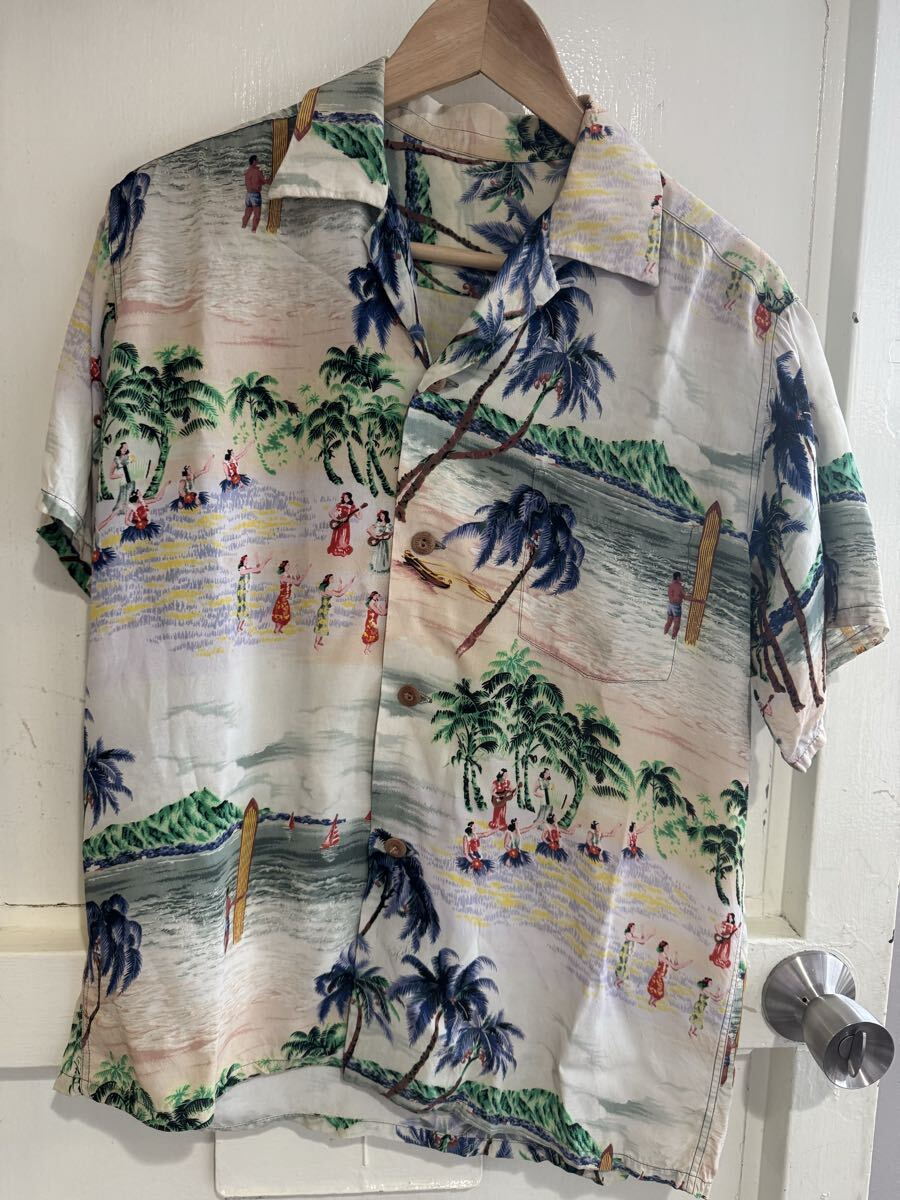- ビンテージ 40s 50s アロハシャツ ハワイアン ちりめん M〜L
