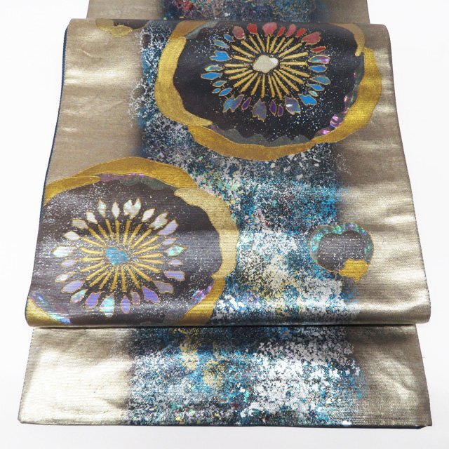 - 袋帯 未使用 正絹 フォーマル 未仕立て 六通 西陣織 証紙付き 螺鈿箔 花模様 引箔 きもの北條 A1250-4