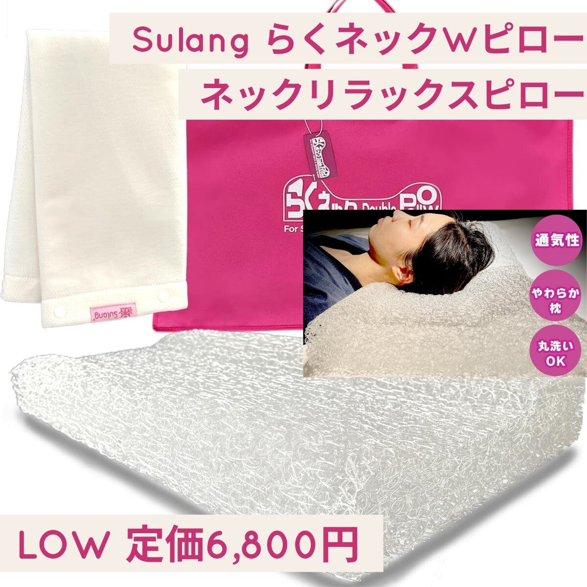 > 新品☆定価6,800円 LOW らくネック Wピロー Sulang スーラン ネックリラックスピロー 枕 ネックピロー ファイバー素材 丸洗い 子供OK 低め