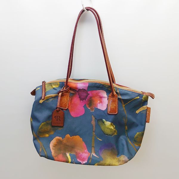 - roberta pieri ロベルタピエリ バッグ 肩がけ レザー ネイビー花柄 状態良し