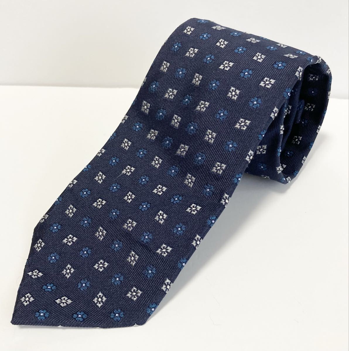 - ビームスエフ BEAMS F 小紋柄 ネクタイ ネイビー 日本製 ハンドメイド シルク