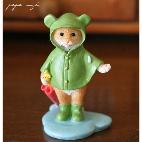 - レインコート 猫 置物 オブジェ ネコ ねこ キャット オブジェ