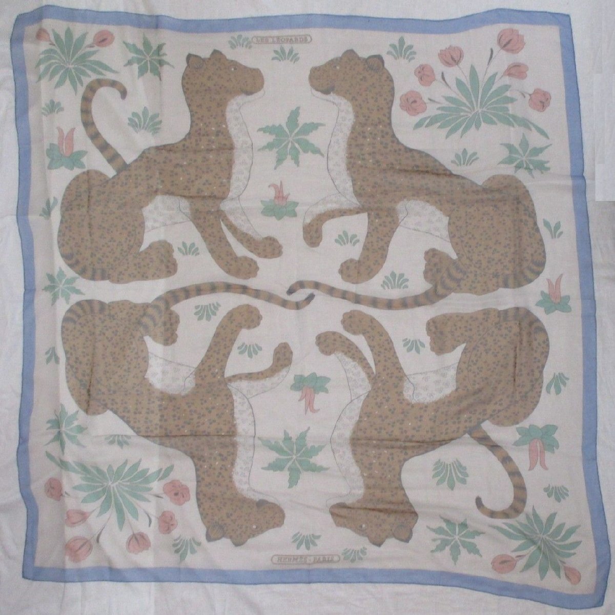 > ■エルメス■美品■モスリン カレジェアン カレ140 ショール ストール■LES LEOPARDS レオパード■