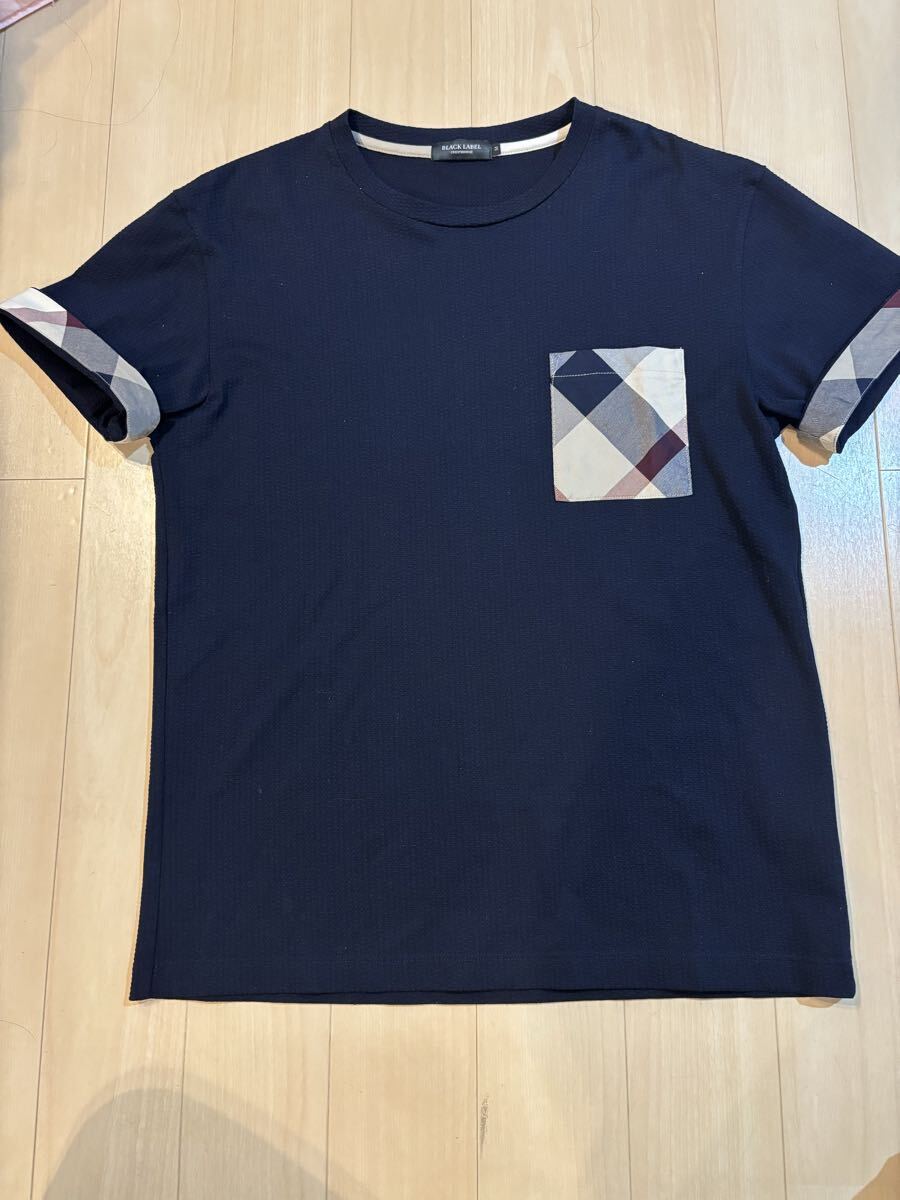 > 美品!2回着!ブラックレーベルクレストブリッジ 半袖Tシャツ ノバチェック 紺色 Mサイズ トップス