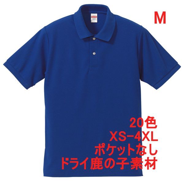 > ポロシャツ M コバルト ブルー 半袖 ベーシック 無地 鹿の子素材 ドライ カノコ 速乾 綿ポリ 胸ポケットなし シンプル A694 青 青色 505001