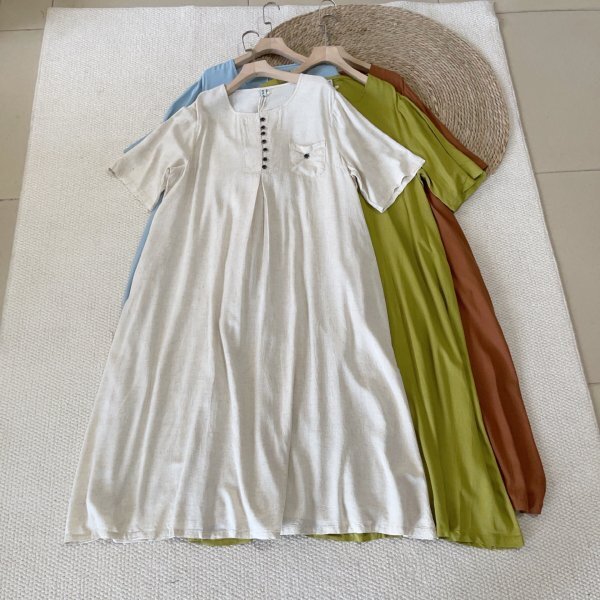 > lh 0708 ワンピース Aライン フリーサイズ チュニック ナチュラル 綿100% 大人可愛 純色 サラサラ 半開け 白色