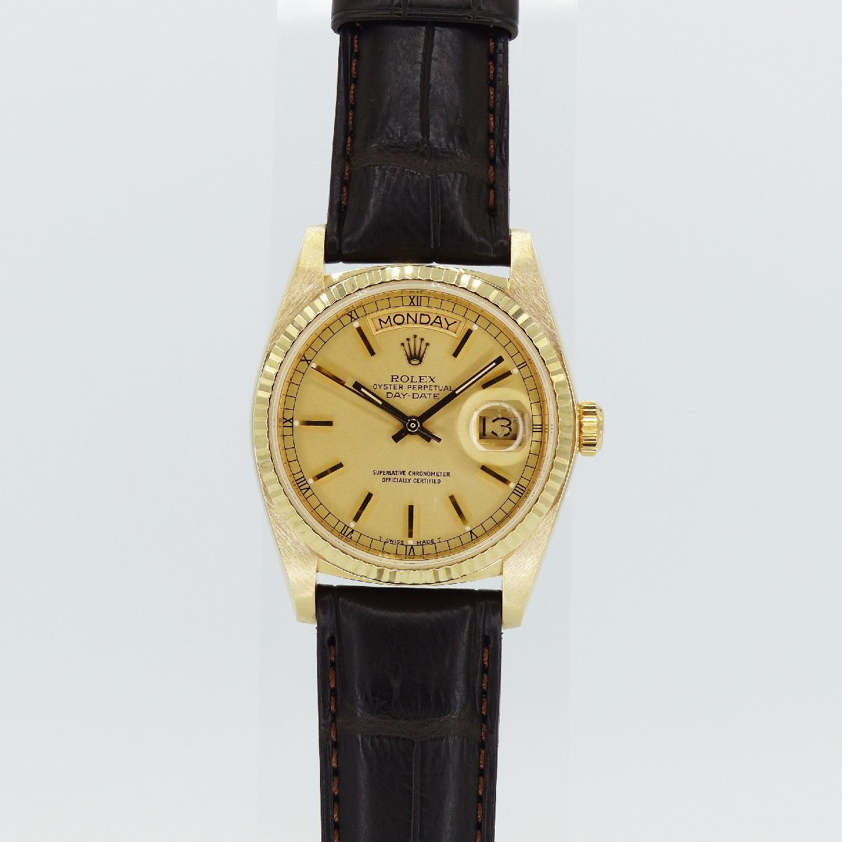 > ROLEX ロレックス 18038 デイデイト DAY-DATE 18K/YG 750 ゴールド 社外ベルト クロコマット メンズ 腕時計 ウォッチ パーツ交換あり