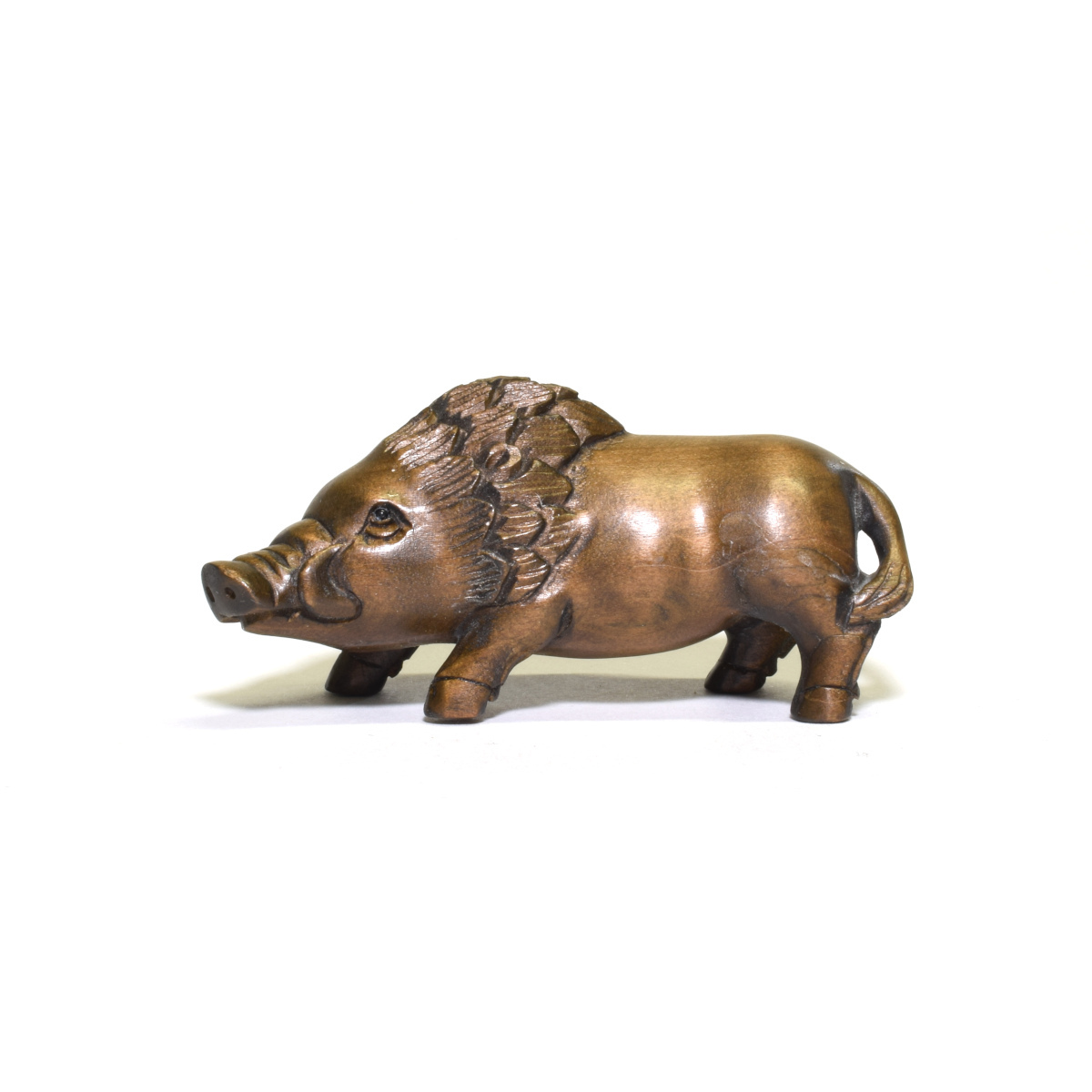 - 根付 猪 柘植 木彫品 木製 彫刻品 黄楊 イノシシ na07-m-28