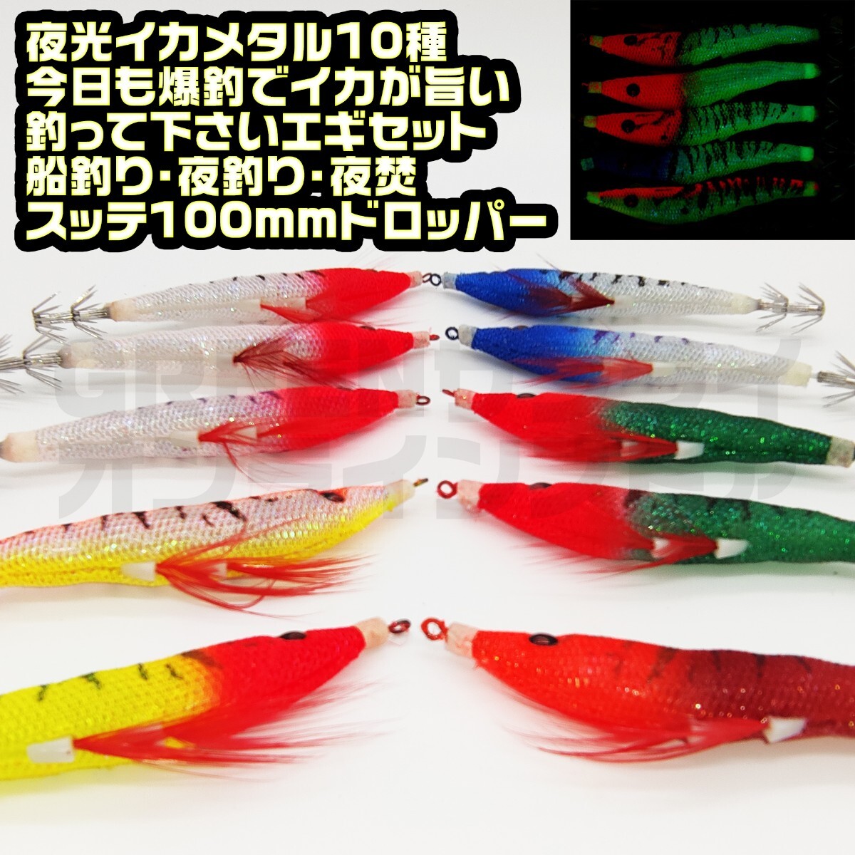 - イカメタル スッテ 夜光 爆釣 100㎜ ドロッパー 烏賊 タコ 10個 セット
