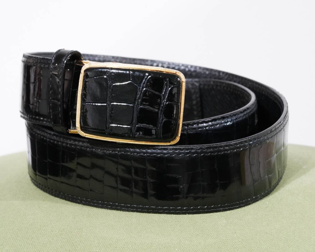 - 最高級 フォーマル 法事 ベルト 黒 逸品 ブラック エナメル