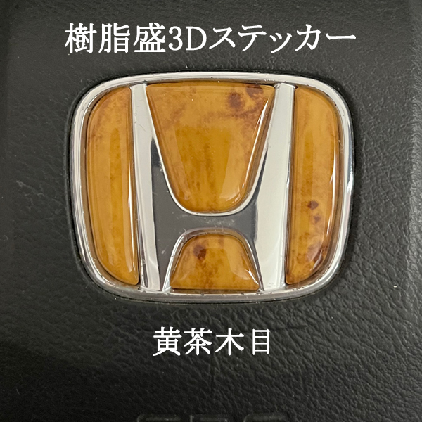 - ホンダ ステアリング エンブレムシート 黄茶木目 ウッド SDH-H01 ハンドル用 樹脂盛立体3Dシール HONDA ZEROWIN