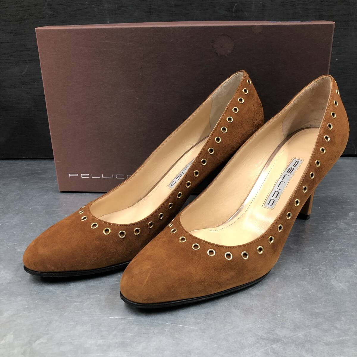 - WQ643●PELLICO:箱付き ハトメスウェードパンプス ●37● ブラウン 定価¥52000- ペリーコ