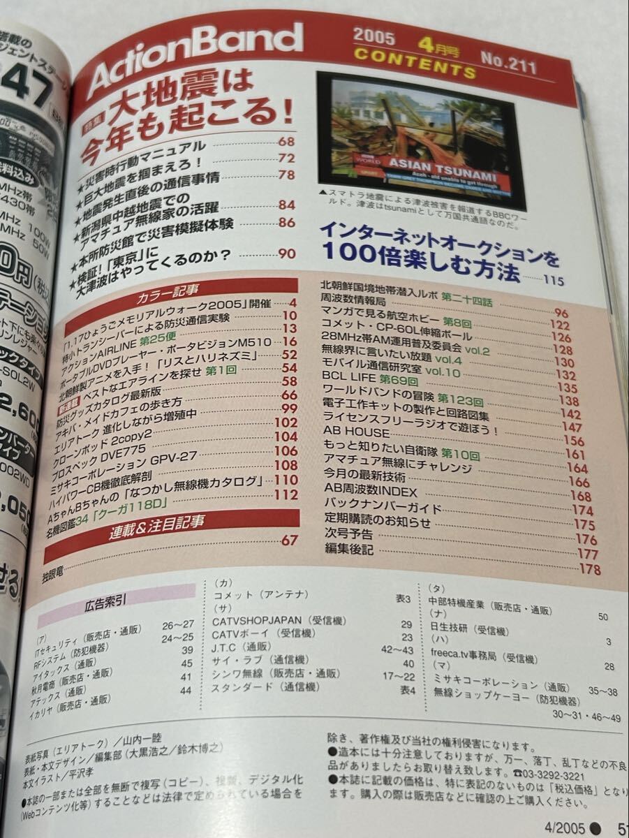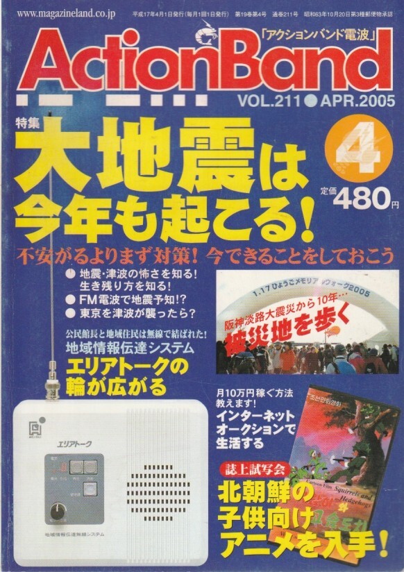 > アクションバンド 2005年04月号/大地震/災害時行動マニュアル/防災グッズ/GPV-27/ハイパワーCB機徹底解剖/CP-60L伸縮ポール/BCL/電子キット