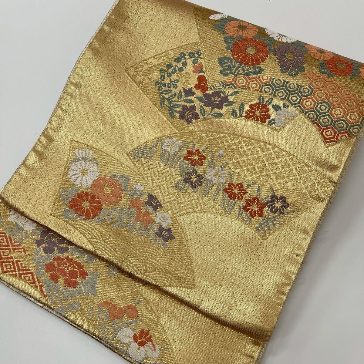 - 袋帯 正絹 佐賀錦 地紙 唐織 花草文 六通 W-3475