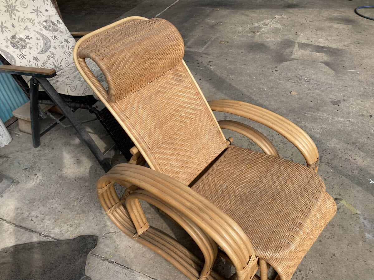 - 籐のリクライニングチェア オットマン付き 足回り汚れあり、ホコリかぶっています。