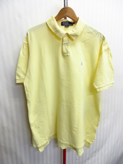 - USA製 ラルフローレン 90sヴィンテージ ポロシャツ メンズUS L XLサイズ 黄 イエローシャツ 襟付き半袖カットソー ロゴ刺繍シャツ08013