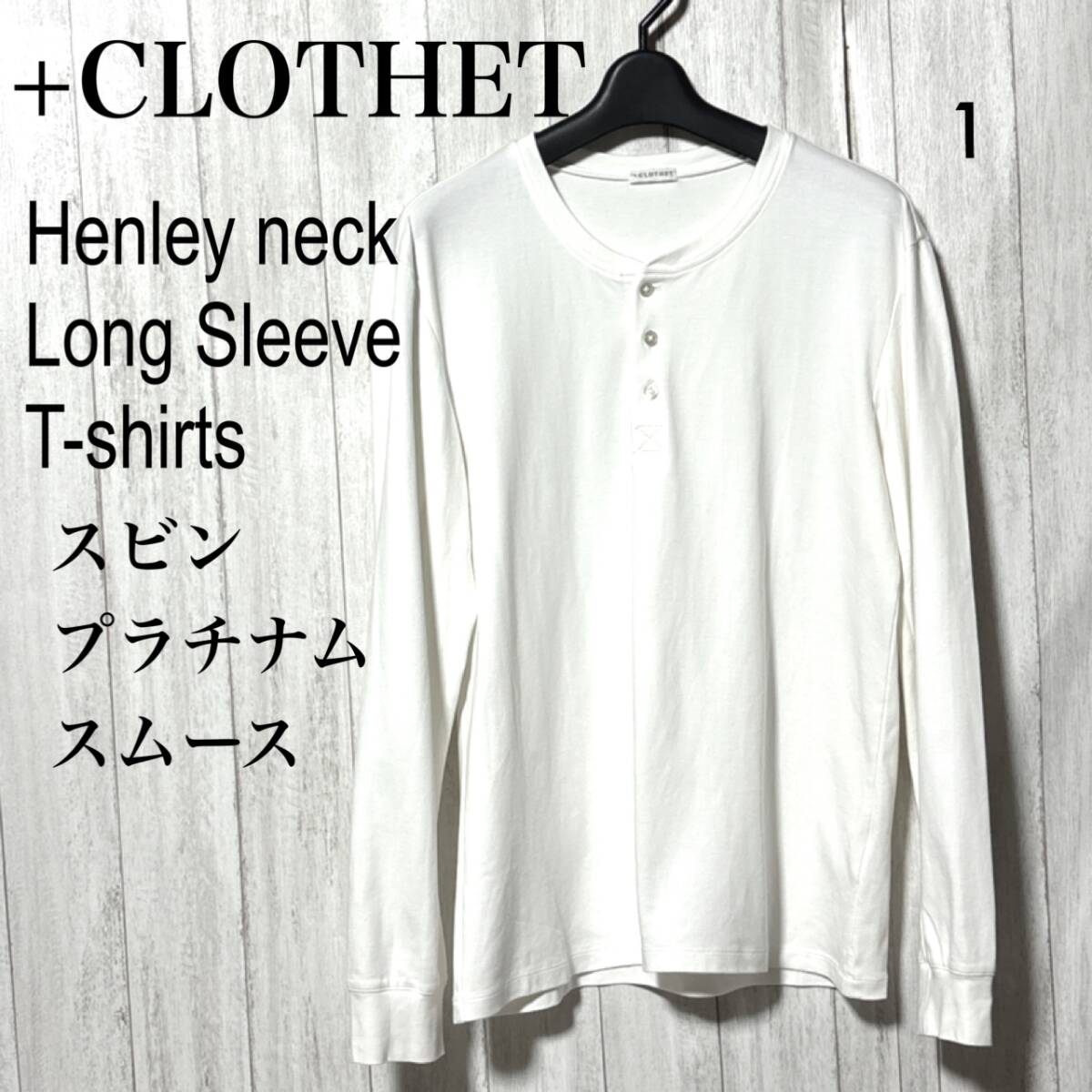 - クロスクローゼット ヘンリーネック 長袖 Tシャツ 白 1 +CLOTHET スビンプラチナムスムース Henley neck Long Sleeve T-shirts ①
