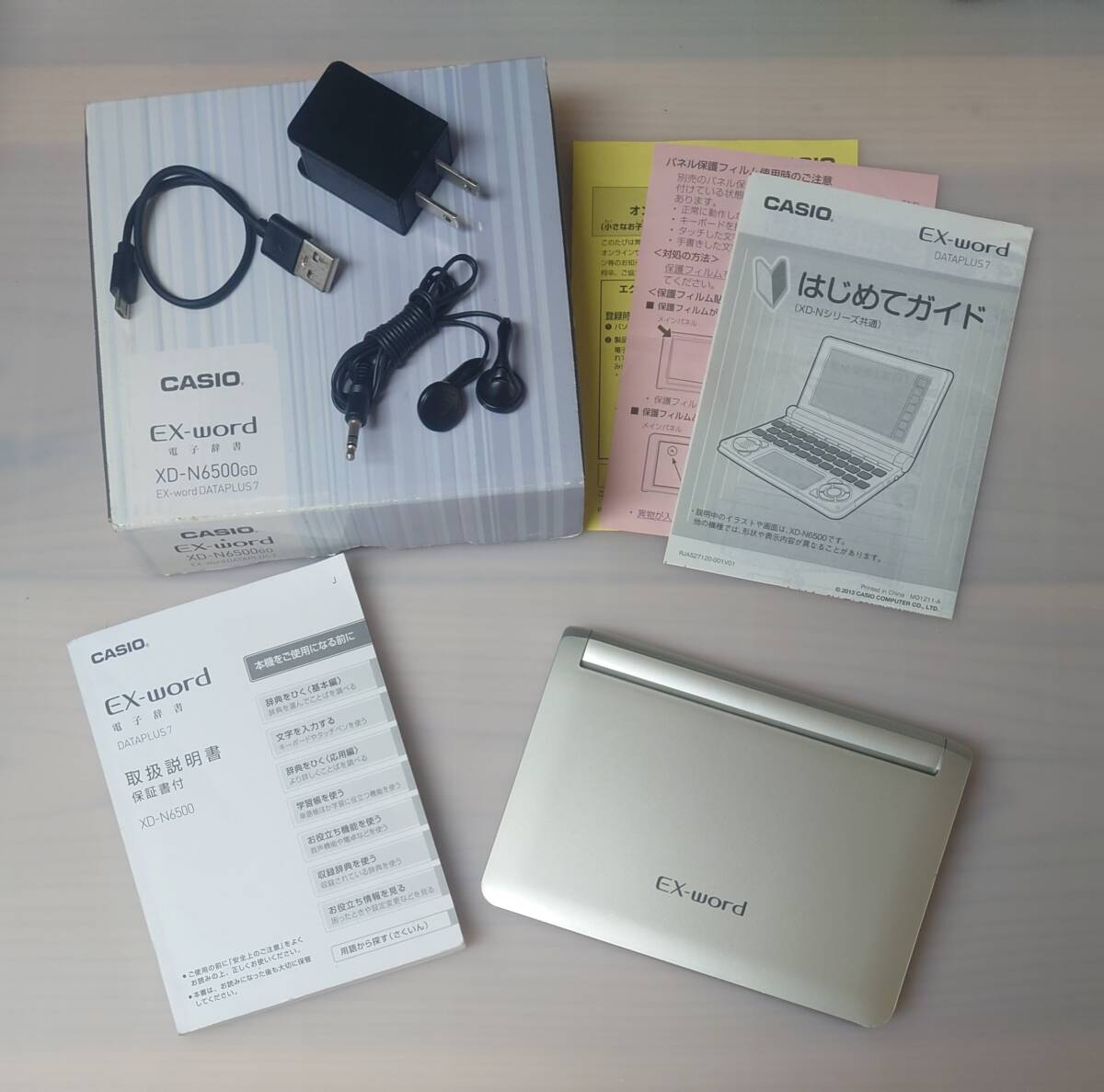 - 【少し難あり】 CASIO 電子辞書 EX-word DATAPLUS7 XD-N6500 シャンパンゴールド 箱・取説・USBケーブル・イヤホン・ACアダプタ)付 現状品
