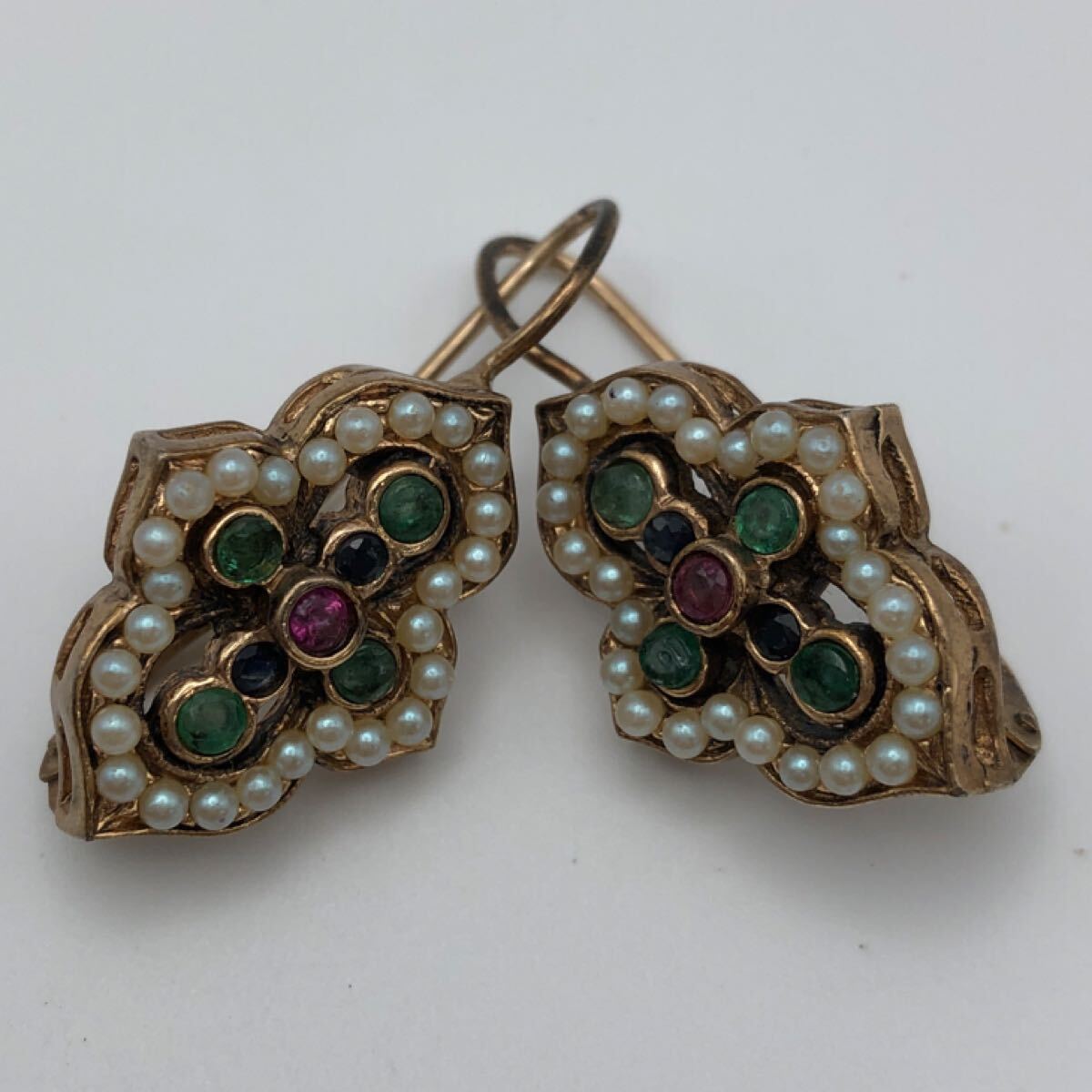 - アンティークピアス 6-126【中古品】SV ピアス パール 色石