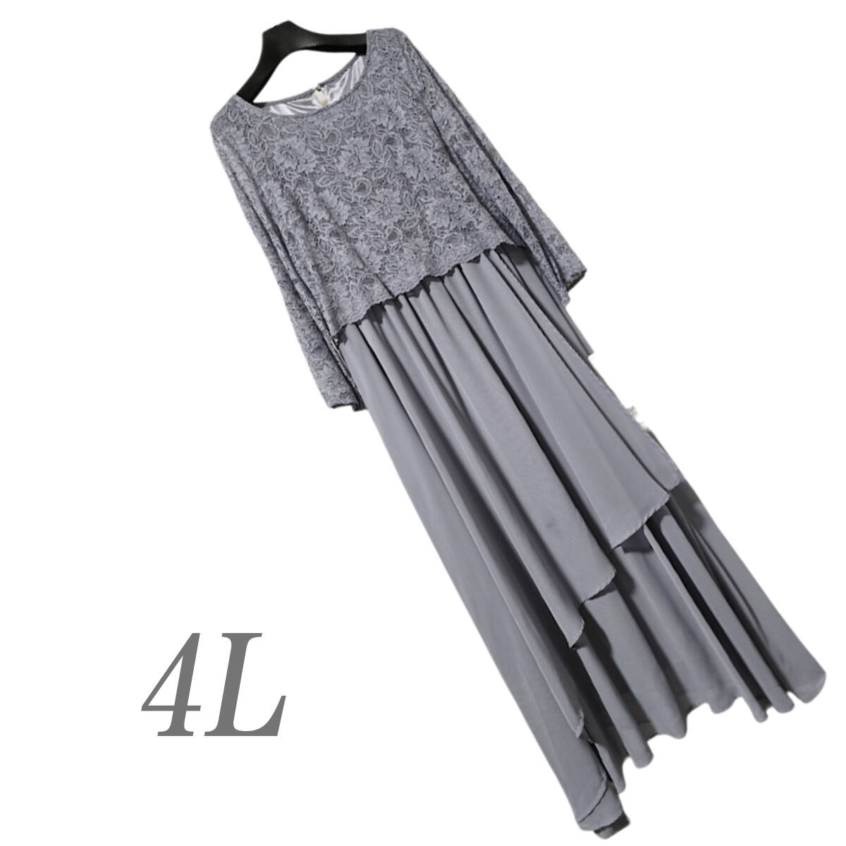 - ●新品/ワンピース/4L/レース/グレー/結婚式/二次会/レディース●x0043