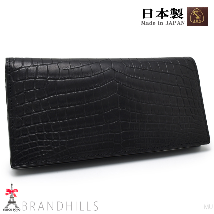 - クロコダイル 長財布 メンズ ブラック マット加工 一枚革 センター取り 無双 日本製 JRA 新品