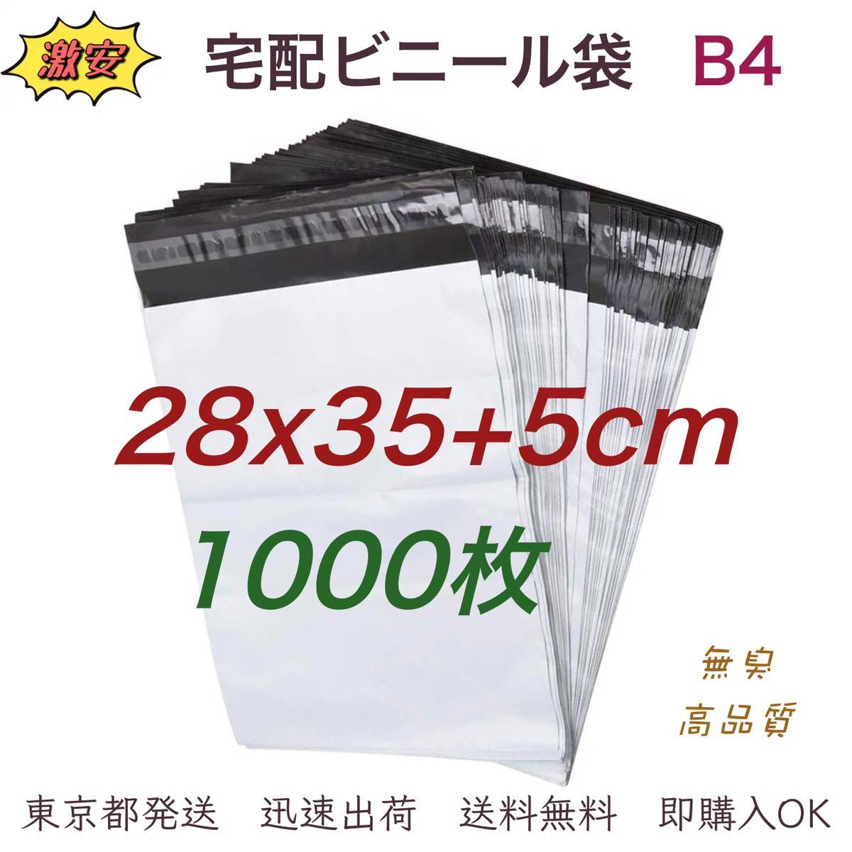- 宅配ビニール袋 28×35+5cm B4 宅配袋 ポリ袋 梱包袋 ビニール袋 防水袋 梱包資材 テープ付き 袋 1000枚 業務用