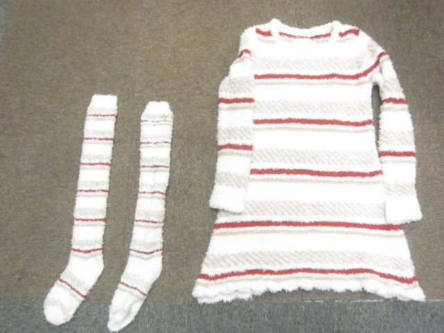 > ジェラートピケ もこもこルームウエア+ソックス 2点セット ワンピース型ルームウエア リラックスウエア パジャマ クリスマス 靴下08029