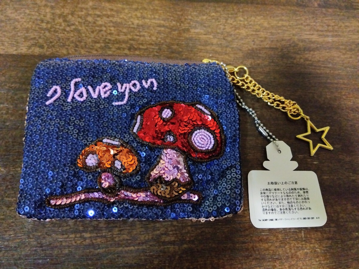 > 【未使用品】Appetissant by SAZABY、ポーチ、スパンコール、コインケースに(^o^※)、保管時の劣化少々あり、リスとキノコのリバーシブル