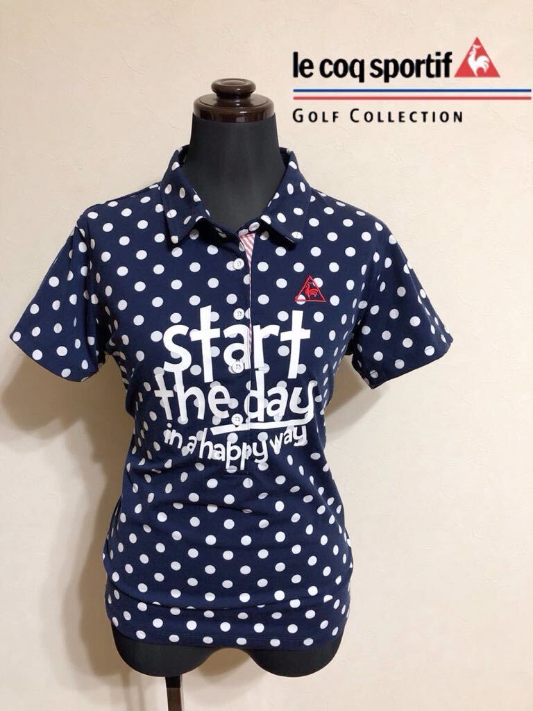 - le coq sportif golf ルコック ゴルフ ウェア レディース ポロシャツ ドット柄 トップス サイズL 半袖 ネイビー 白 水玉柄 デサントQGL2514