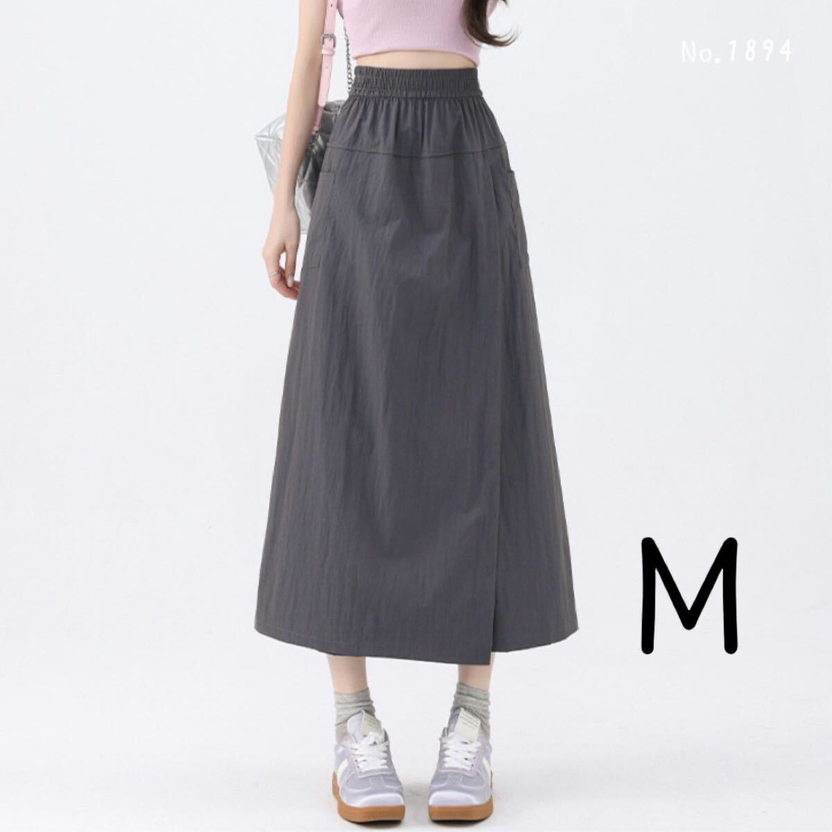 - 新品!パンツ 巻き ロング ボトムス ボトム グレー M 巻きスカート風